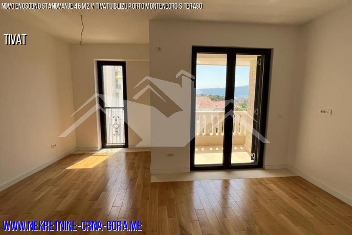 V mestu Tivat, okrožje Podkuk, je v novi stavbi naprodaj stanovanje z 1 spalnico + garderobo, 46 m2.