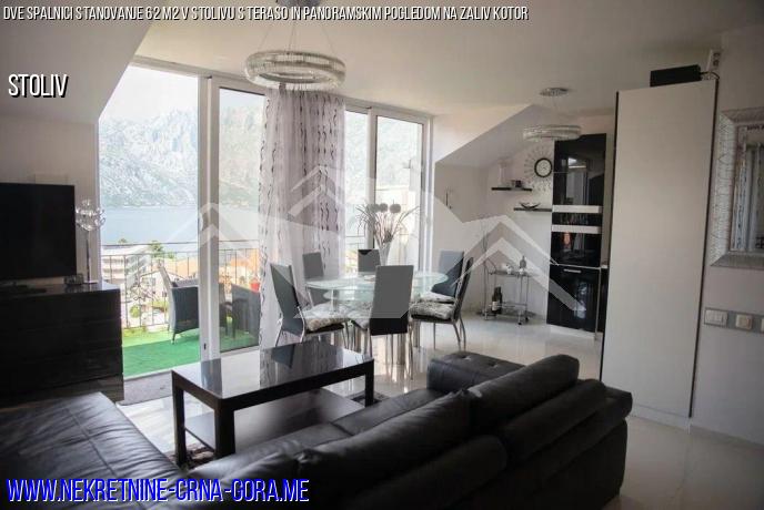 Apartma za prodajo s panoramskim razgledom na Kotorski zaliv.
