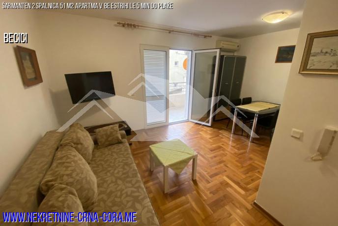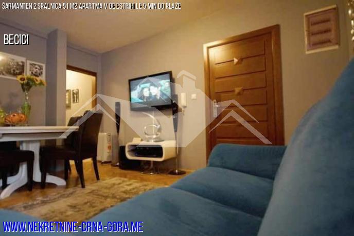 Na budvanski rivieri v Bečičih je naprodaj stanovanje velikosti 51 m2 z dvema spalnicama in dnevno sobo. Nahaja se v drugem nadstropju stanovanjske stavbe.