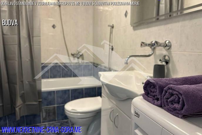 Za prodajo Udobno 33 m2 enosobno stanovanje v Budvi, ki se nahaja v zgornjem nadstropju petnadstropne stavbe na območju modrega mostu.