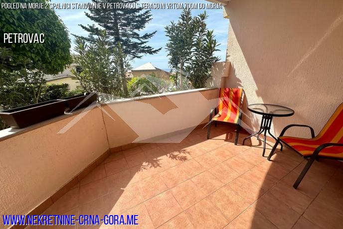 Prostoren apartma za prodajo v Petrovac 65m2, 9m2 terasa, 2 spalnici, s pogledom na lep zeleni vrt in morje.