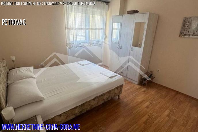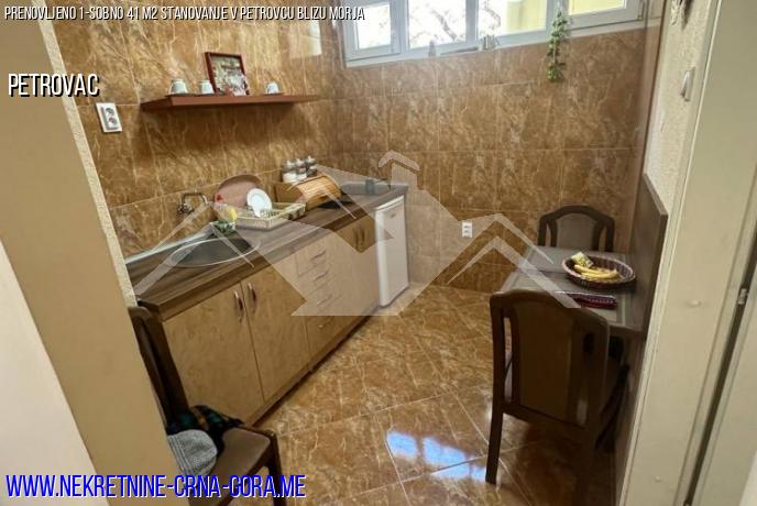 Stanovanje z ločeno spalnico za prodajo po prenovi v središču Petrovca. Odlična lokacija-350 metrov do morja, 3 minute hoje do centra. Zeleno, slikovito območje brez cest, veliko zelenja in dreves naokoli.