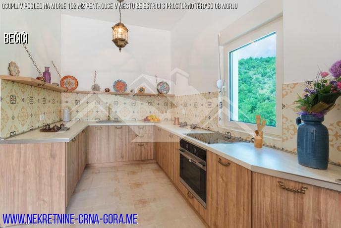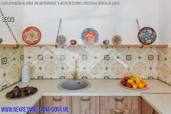 Penthouse je sestavljen iz dnevne sobe, kuhinje, dveh spalnic, dveh kopalnic in teras s pogledom na morje in gore