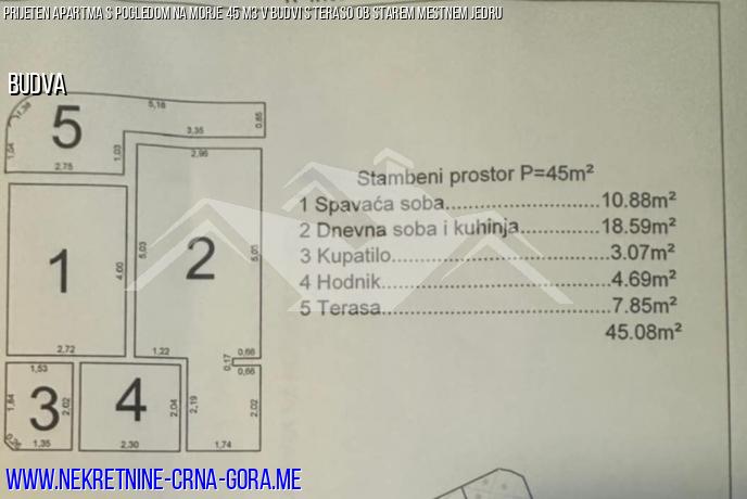 Enosobno stanovanje 45 m2 za prodajo v Budvi, 700 metrov od morja.