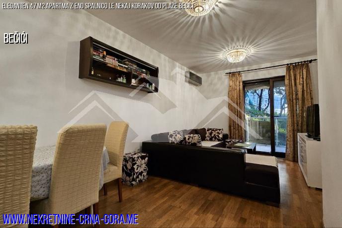 1 sobno stanovanje za prodajo v letovišču Becici, 200 metrov od plaže na ravni cesti.