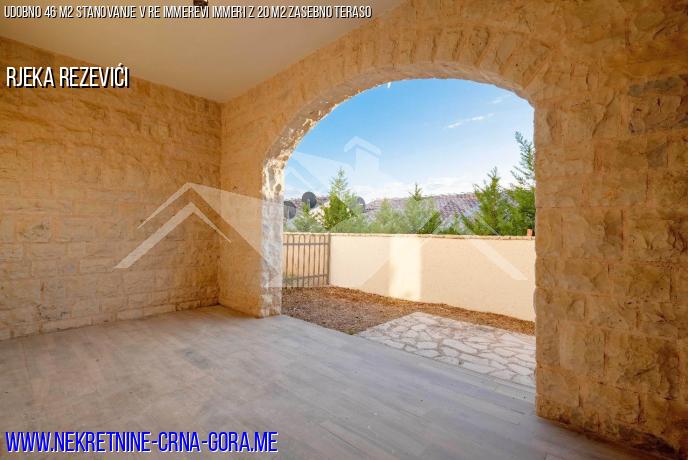 Stanovanje v pritličju dvonadstropne stavbe je naprodaj v Rejevici na Budvanski rivieri.
