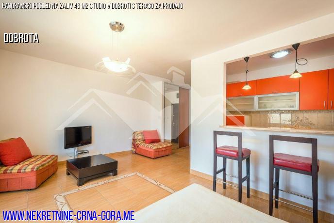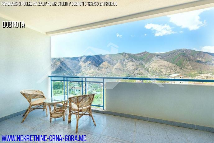 Studio apartma 46 m2 + 15 m2 terasa s panoramskim razgledom na zaliv je naprodaj v dobroti, Kotor.