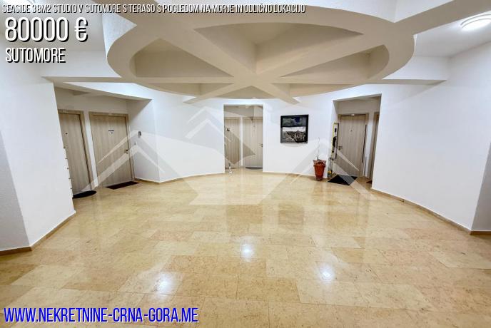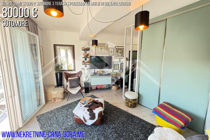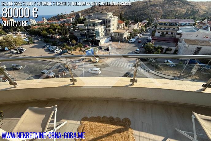 Za prodajo Prijeten studio 30 m2 s teraso 8 m2, le 38 m2, v samem središču Sutomore s čudovitim pogledom na morje. Plaža je oddaljena le 500 metrov.