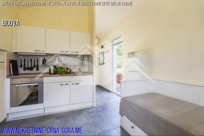 Në komplot ka një shtëpi mysafir prej 40m2 me dy dhoma të ndara - një dhomë gjumi dhe një dhomë të gjallë kuzhine, një banjo me dush. Antenë TV, ajer te kondicionuar, kuzhinë me sobë dhe frigorifer. Ka një pishinë komunale në territorin e fshatit-100m2