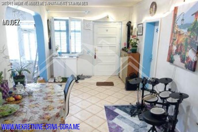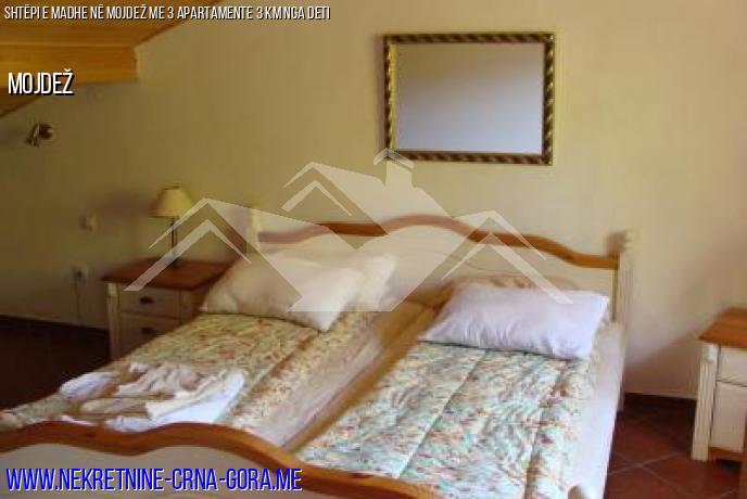 Një shtëpi me tre apartamente. Numri i përgjithshëm i dhomave është 8, dhoma gjumi 5, banjo 3.