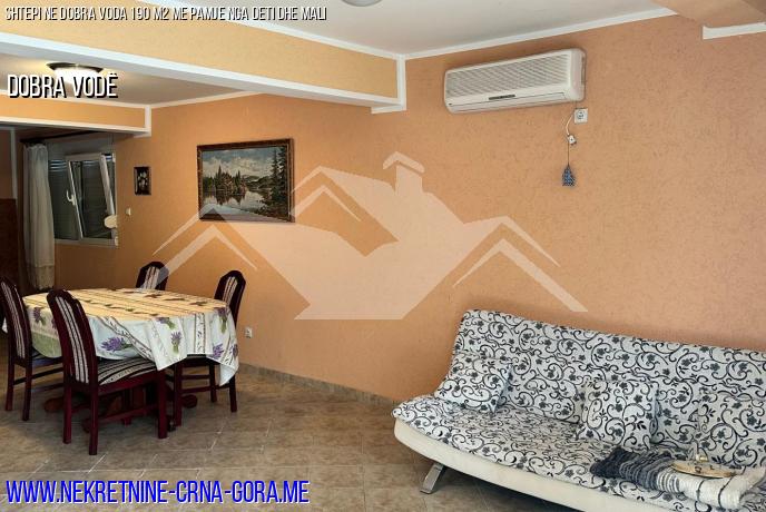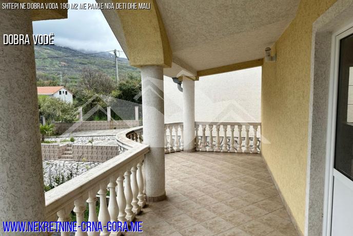 Një shtëpi Në Dobra Vody me pamje nga deti dhe mali ofrohet për shitje. Shtëpia është dykatëshe.