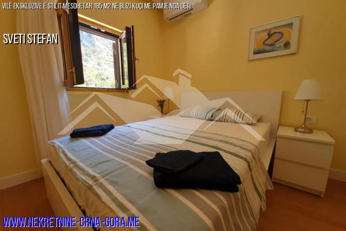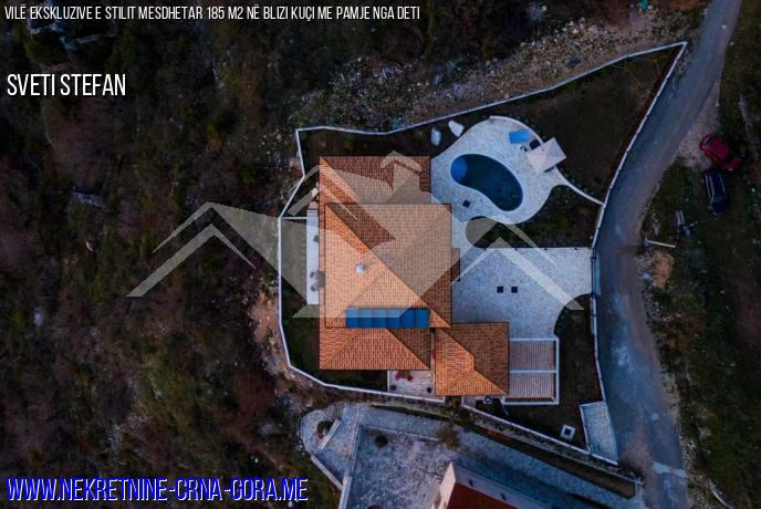 Ne ofrojmë për shitje një vilë të gjerë të ndërtuar në një stil Mesdhetar dhe të brendshme të dekoruara me shije, të vendosura në një fshat në rrethin Blizikuche, pranë Sveti Stefan, në një lartësi prej 285 m mbi nivelin e detit. Ndërtimi u përfundua në vitin 2020. Vila është projektuar dhe pajisur për jetesë të rehatshme gjatë gjithë vitit.