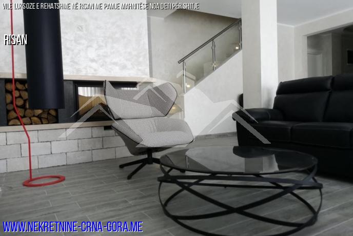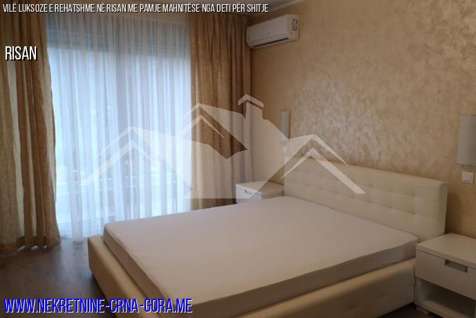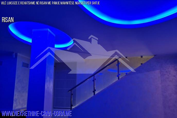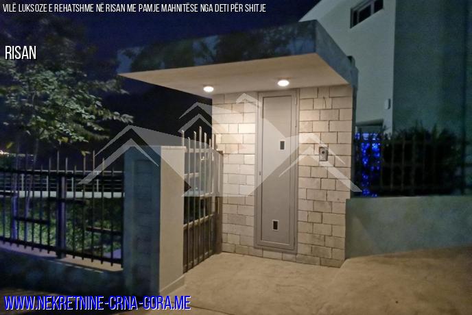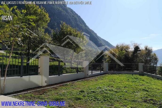 Për shitje, një vilë luksoze me një pishinë, një zonë landscaped dhe një pamje të bukur të Detit Adriatik dhe qytetin E Risan. Distanca në det 600m (nga ajri). Ndodhet në një vend të qetë dhe të këndshëm dhe ofron rehati të madhe për lindjen e fëmijëve dhe rekreacionin familjar. Një rrugë e re e asfaltuar me ndriçim të qytetit të çon në vilë (1.4 km nga deti).
