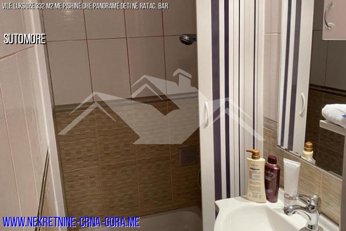 Për shitje: një vilë (332 m2) me një ngastër të mirëmbajtur (568 m2) në zonën E Ratac, 7 kilometra nga qyteti I Bar. Ai përfshin një garazh privat dhe parkim për një makinë. Deti është 450 metra larg. Prona ka ujë të qytetit dhe një sistem septik. Janë instaluar një oxhak dhe një sobë me dru. Shtëpia është e pajisur me kondicionerë. Ka dhoma të shërbimeve në komplot, magazinim për materialet e kopshtit dhe pajisjet e pishinës. Përveç kësaj, ka një dhomë të veçantë lavanderi. Shtëpia ishte shumë e dashur nga pronarët e saj të mëparshëm! Shtë një vend ideal për të jetuar gjatë gjithë vitit në një vend të qetë dhe të qetë jo shumë larg qendrës së qytetit, si dhe për pushimet verore.
