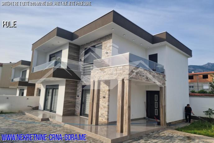 Për shitje: një shtëpi e bukur, e re me një oborr në një zonë të qetë Të Barit, Polje. Shtepia e bollshme ka nje siperfaqe prej afro 240 m2 dhe ndodhet ne nje truall 350 m2.