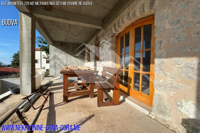 Kjo shtëpi e bollshme me një sipërfaqe prej mbi 220 m2 ndodhet në një ngastër prej 600 m2 vetëm 7 minuta me makinë nga qendra e Budvës.