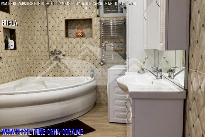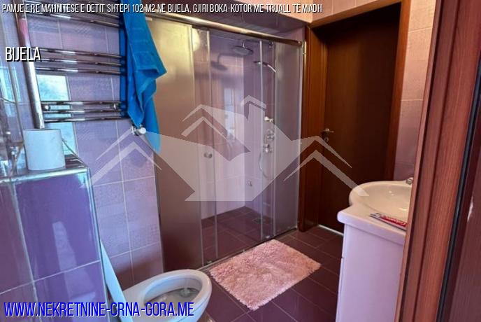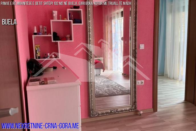 Në bregdetin e Gjirit Të Kotorrit, shitet një shtëpi 102 m2 në qytetin Bijela me pamje nga deti dhe në anën tjetër Të Malit Lovcen me mauzoleun Negos. shtëpia ka një ngastër të madhe të rrethuar mbi 500 m2.