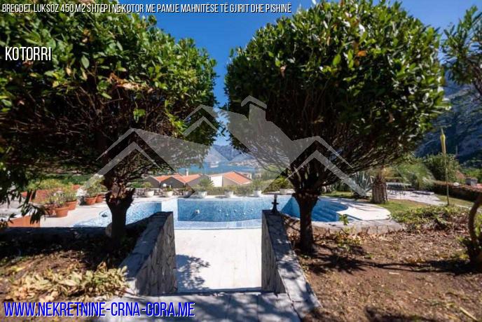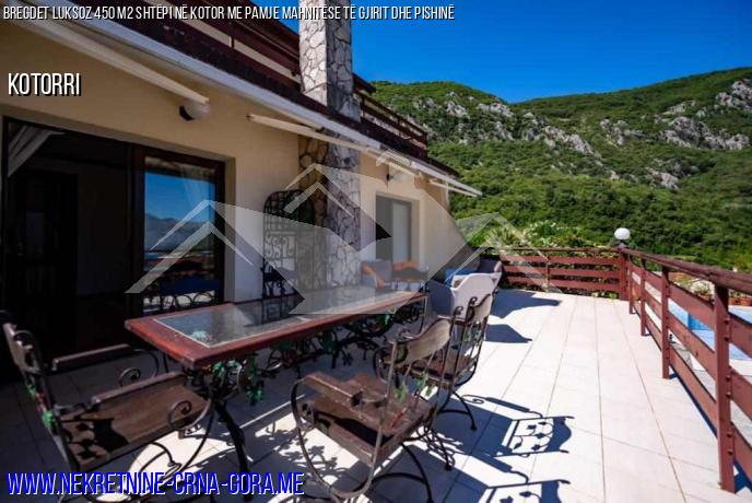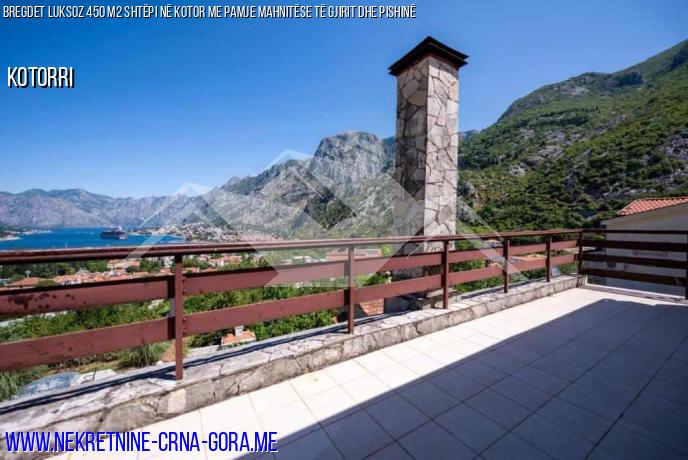 Një shtëpi me një oborr të madh, një ndërtesë dhe një pishinë në pjesën më të bukur të Kotorrit në zonën E Scalarit me një pamje të bukur të gjirit.