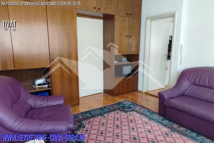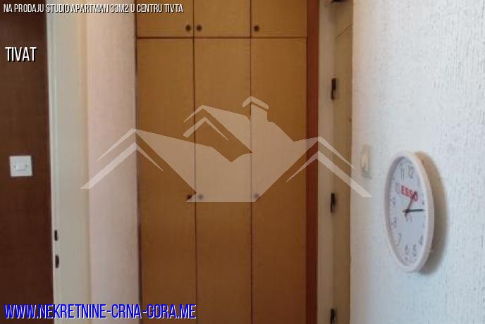 Prodaje se stan od 33m2 u centru Tivta, a sastoji se od sobe, kuhinje, balkona, toaleta i hodnika. Nalazi se na 2. katu (3.), nalazi se lift, parket. U stanu su promijenjene cijevi, bojler, fasada je ažurirana. U blizini kuće nalaze se trgovina prehrambenih proizvoda, park, parking, poliklinika, vrtić i škola.