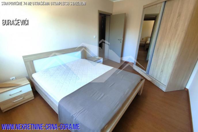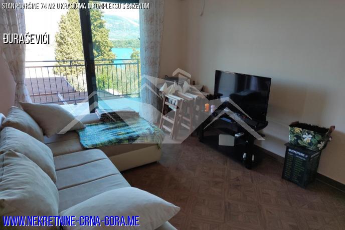 U kompleksu s bazenom prodaje se stan površine 74m2 na prvom visokom katu.