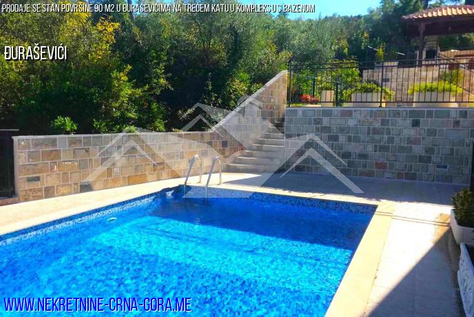 U kompleksu s bazenom prodaje se stan površine 90m2 na trećem katu.