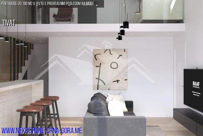 U novom modernom apartmanskom kompleksu prodaje se penthouse površine 180 m2 na 4.katu. Kompleks je potpuno naseljen.