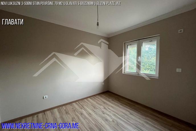 Prodaje se novi stan u zatvorenom kompleksu u blizini Budve u blizini Budve s bazenom, prostorom za piknik i parkingom za 8 automobila.