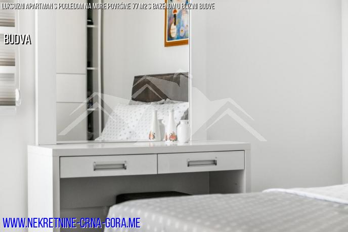 2-sobni stan na prodaju u novom apartmanskom kompleksu s bazenom i nevjerojatnim pogledom na more u mirnom predgrađu Budve. Prostran i svijetao stan od 77 četvornih metara, potpuno opremljen namještajem i modernim kućanskim aparatima, uključujući klima uređaj, sustav podnog grijanja, sustav video nadzora, internet i TV. Apartman ima otvoreni dnevni boravak s kuhinjom i blagovaonicom, 2 odvojene spavaće sobe i veliku terasu.