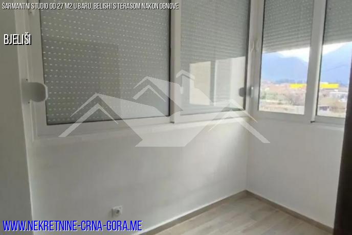 Studio nakon obnove. Studio površine 27 m2 s terasom od 5 m2.