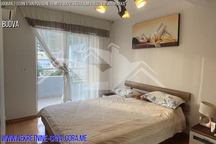 Stan s 2 spavaće sobe u Budvi. Površina 76 m2, 2 inča, 3 kata, terasa, bez lifta.