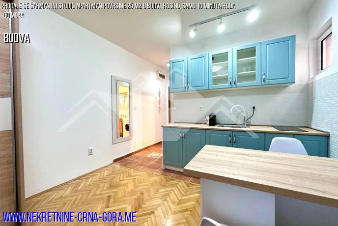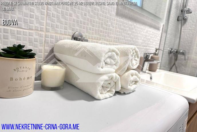 Površina stana je 25 m2. Apartman ima veliki dnevni boravak-studio, kupaonicu i ostakljeni balkon.