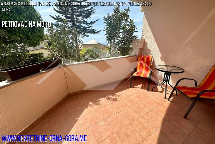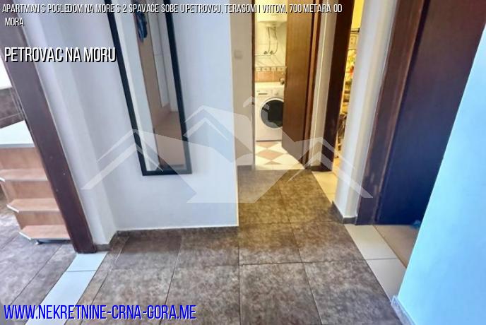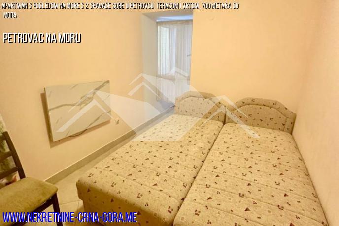 Prodaje se prostrani stan u Petrovcu 65m2, terasa 9m2, 2 spavaće sobe, s pogledom na prekrasan zeleni vrt i more.