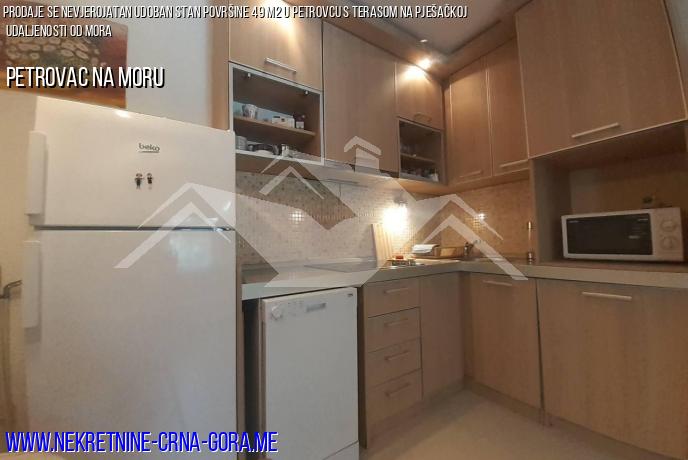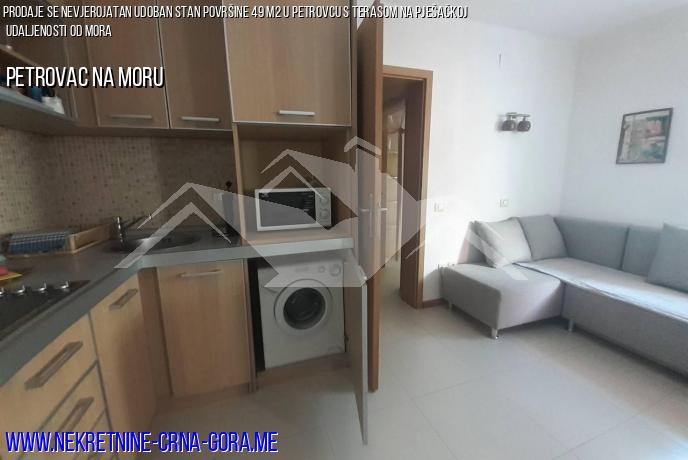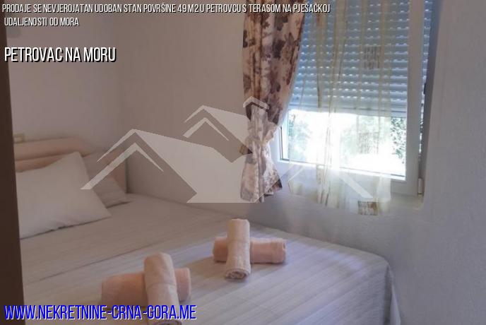 Ugodan stan za boravak i iznajmljivanje u gradu Petrovcu. Zgrada se nalazi u mirnom stambenom području, 350 metara od mora.