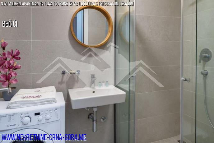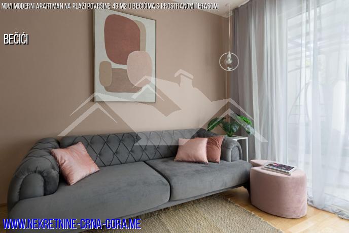 Prodaje se novoizgrađeni stan u modernoj kući u Bečićima s dizajnerskim renoviranjem i privatnim vrtom.