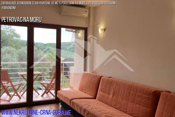Na prodaju je apartman u Petrovcu s pogledom na more. 1 spavaća soba. Površina stana 50m2
