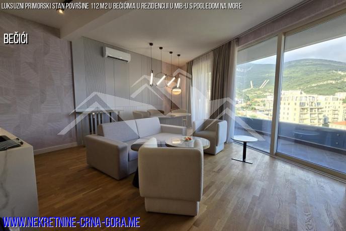 Moderan trosoban stan u Bečićima s panoramskim pogledom na more.