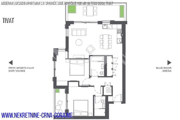 Prodaje se moderan dvosobni stan u kompleksu M. A., Tivt