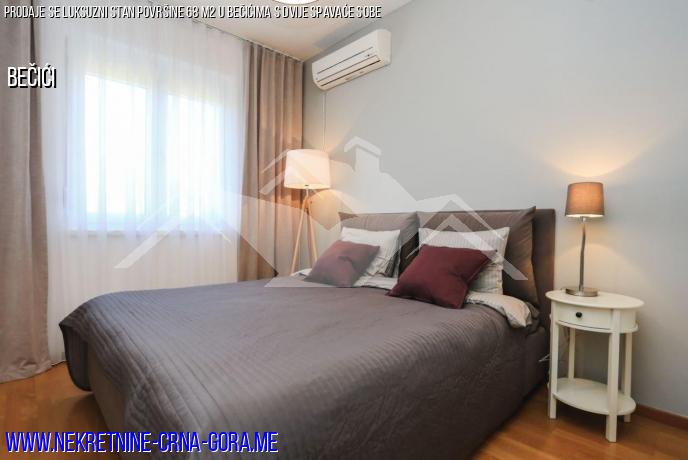 Prodaje se dvosobni stan u odmaralištu Bečići s namještajem i aparatima 2 kilometra od grada Budve u luksuznom apartmanskom kompleksu.