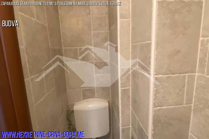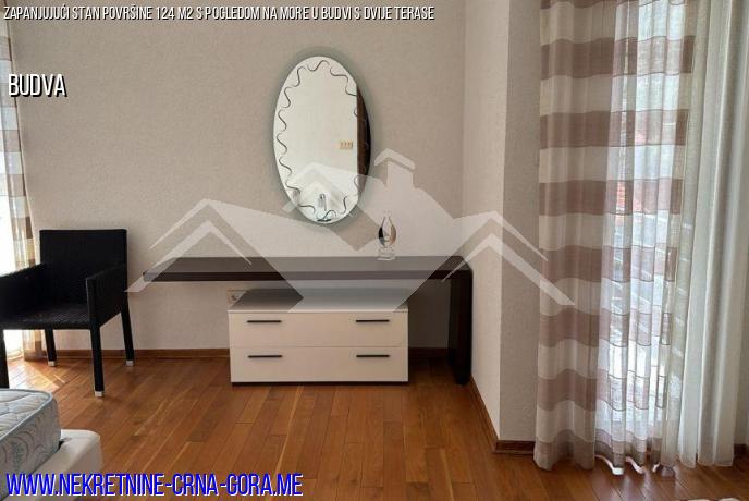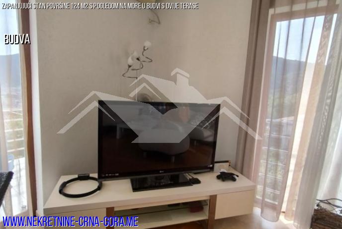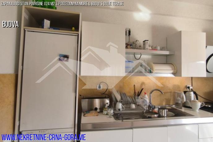 U turističkom gradu Budvi, na području Lazija, nudi se na prodaju prostrani stan površine 124m2 s prekrasnim pogledom na more i planine.