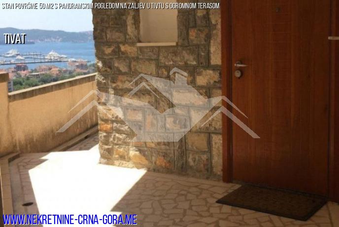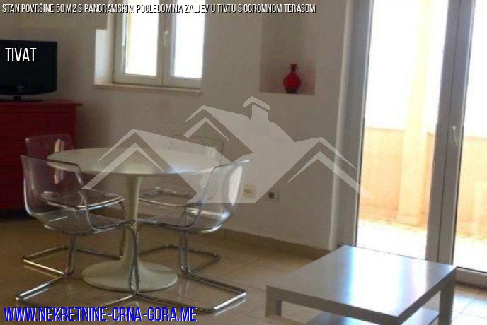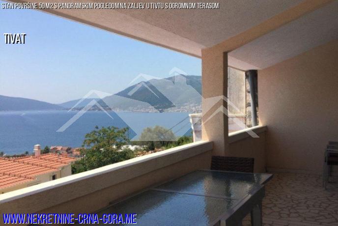 U Tivatu, Planinska Lastva, prodaje se stan s 1 spavaćom sobom površine 50m2 i panoramskim pogledom na zaljev.