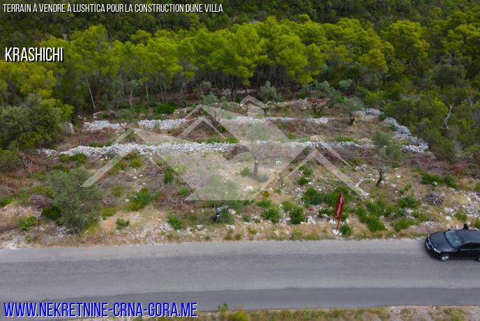 Terrain de 5000m2, situé sur la péninsule de Lustica près de la station balnéaire de Lustica Bay. Le terrain est dégagé, les oliviers poussent.