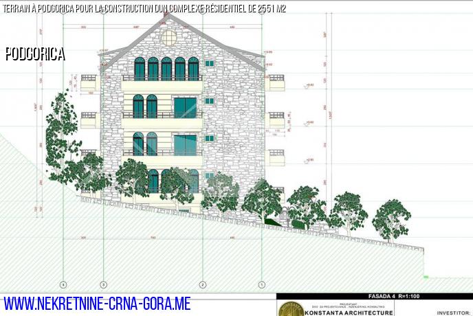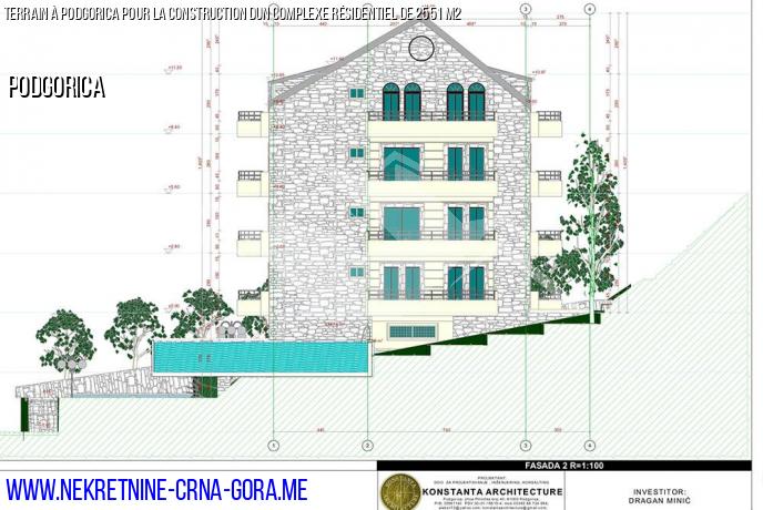 À Podgorica, un terrain de 842 m2 est vendu, sur lequel il est prévu de construire un immeuble résidentiel d'une superficie totale de 2551 m2, destiné à la vente d'appartements. Dans la partie souterraine du bâtiment, il y aura des garages, qui peuvent être accédés directement à partir de l'allée. Le permis de construire a été obtenu “le "projet d'Idée" a été achevé et signé par l'architecte en chef de Podgorica. La construction peut commencer immédiatement.
