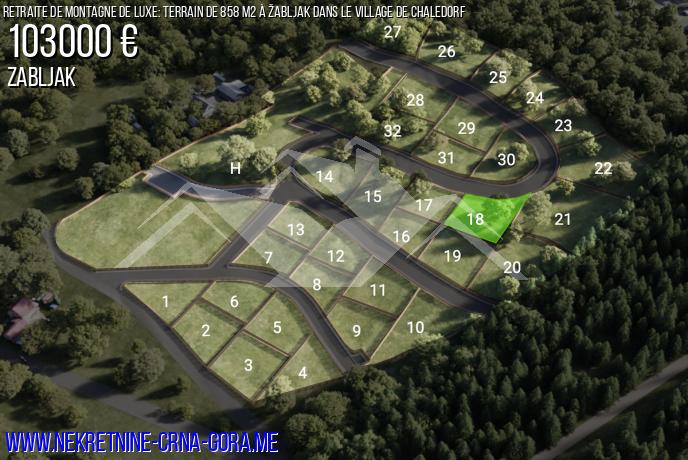 A vendre terrain urbanisé à Žabljak d'une superficie de 858 m2 sur le territoire du village d'élite de Szaledorf.