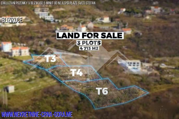Pozemky v luxusní obci blízko poloostrova Sveti Stefan 5 minut od nejlepší pláže Černé Hory