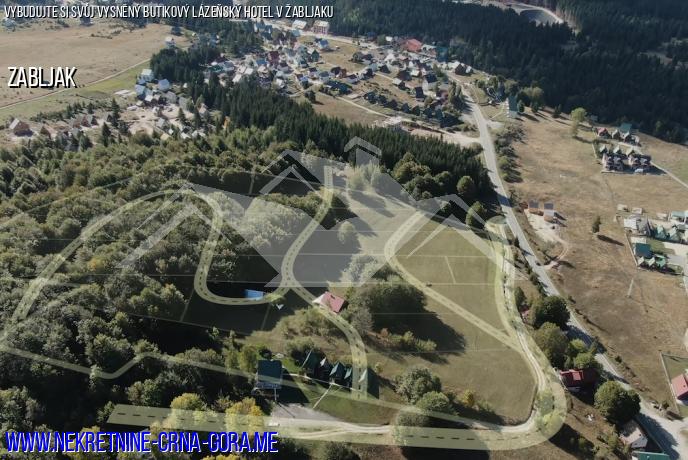 Na prodej je urbanizovaný pozemek v Žabljaku o rozloze 8.700 m2 na území luxusní obce s povolením k výstavbě velkého turistického objektu-butikového hotelu (30-50 pokojů) s důrazem na prostornost, ticho a panoramatické výhledy. Restaurace. SPA-komplex. Wellness centrum.